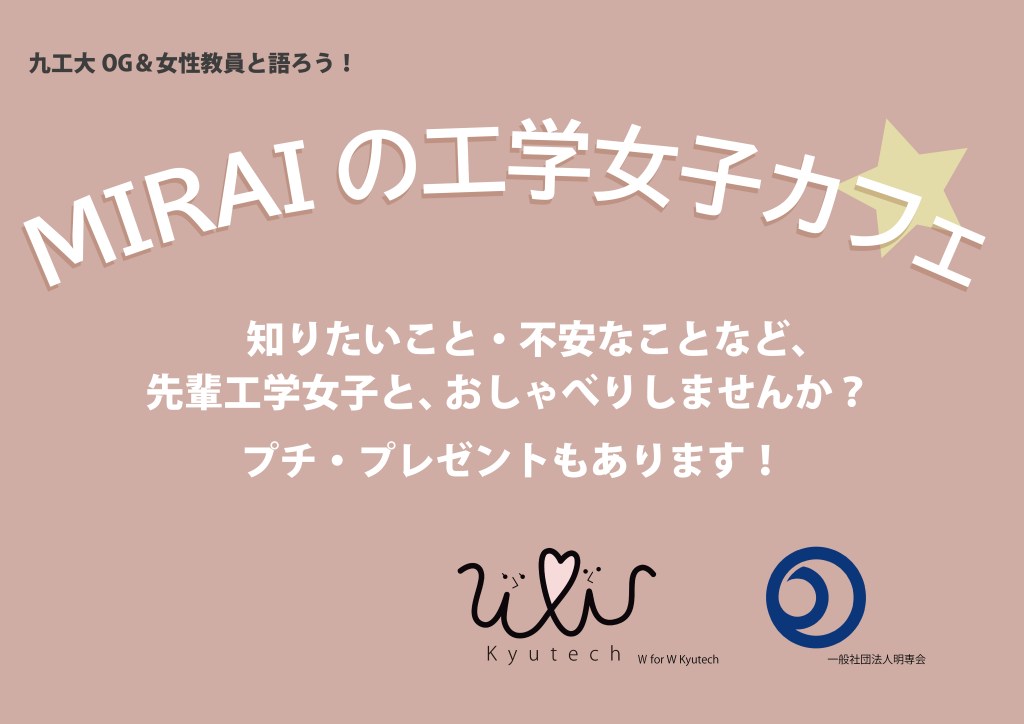 W for Wのメンバー+明専会OGが新歓フェスティバルのブース「MIRAIの工学女子カフェ」にて、皆さんをお待ちしています。気軽に話しかけてください:)